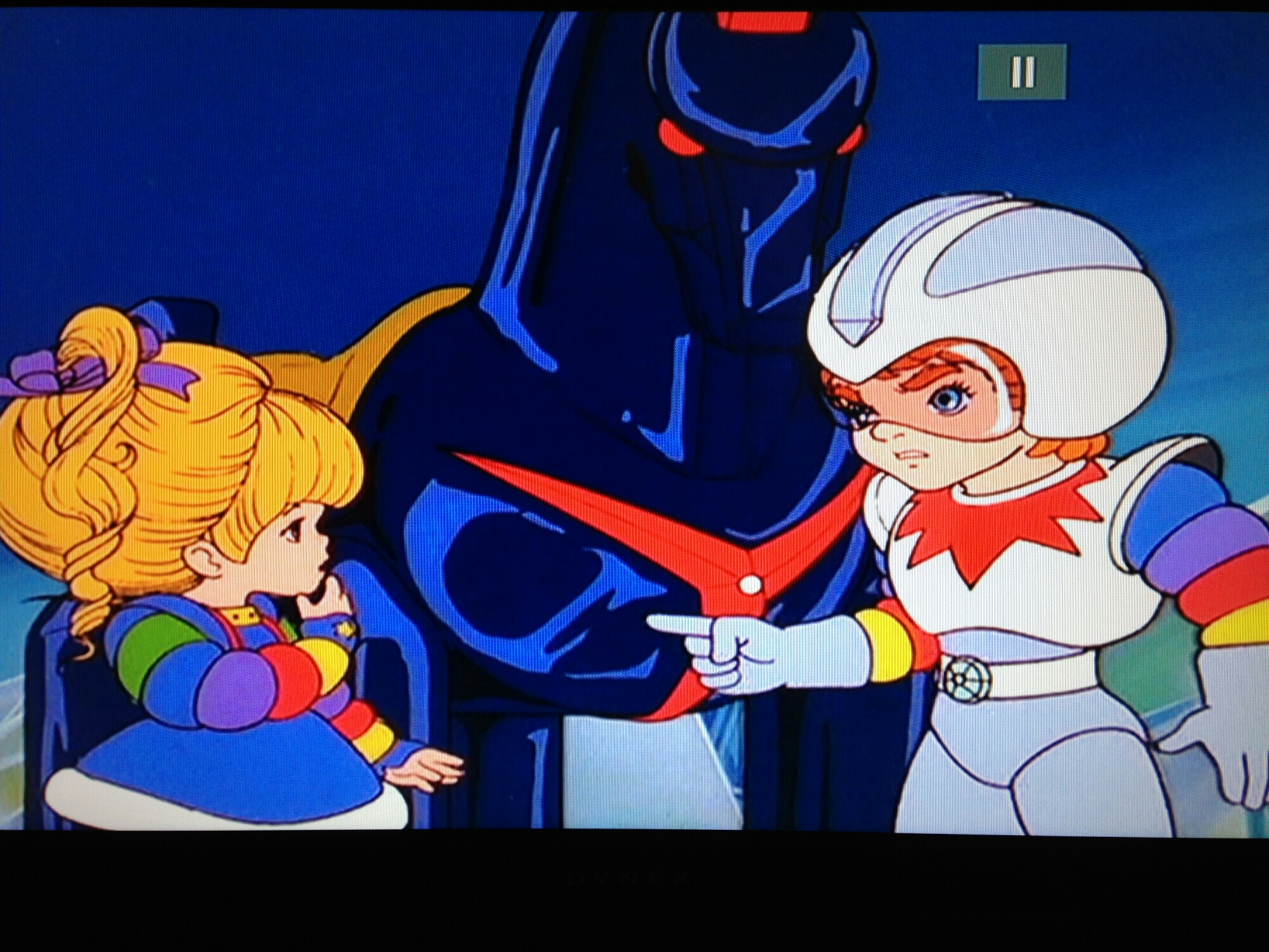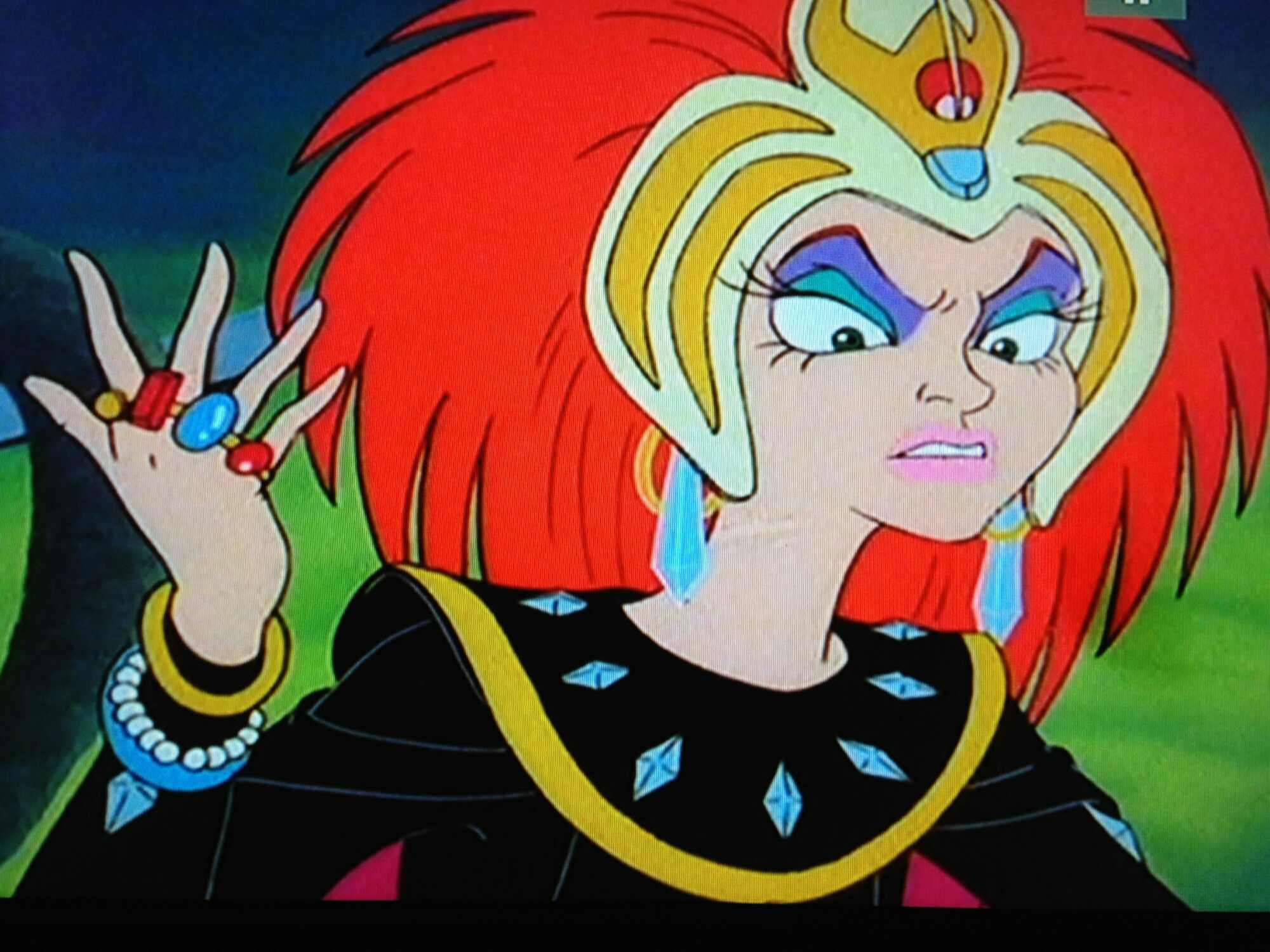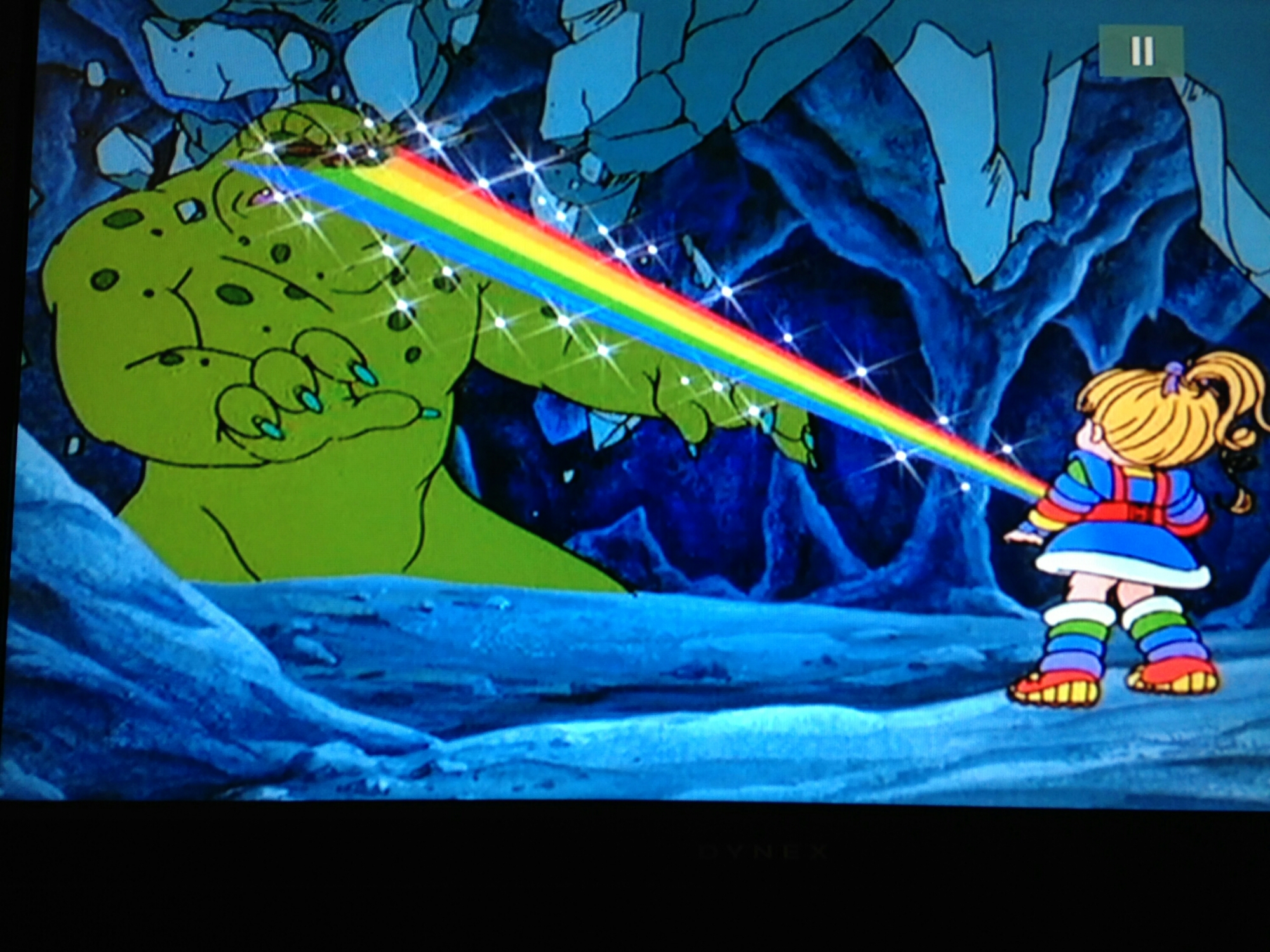 We ride the rainbow to the ominous castle from the opening. The Princess doesn’t want to talk to children. “They never bring good presents”. What’s wrong with macaroni pictures? There was glitter on it. Geez, what a bitch. She blows the kids away, but Rainbow presses on. Krys says no, and Rainbow tells him to turn back then. He can do anything a girl can. Except be the title character. All T all shade.