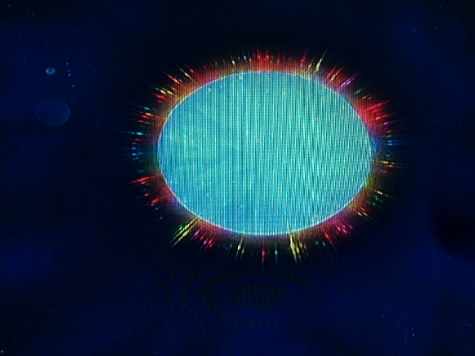 Epic finale! Rainbow summons a rainbow that smacks into Spectra ahead of The Princess, and sends her flying. Spectra is lit back up, and sparking like Liz Taylor.