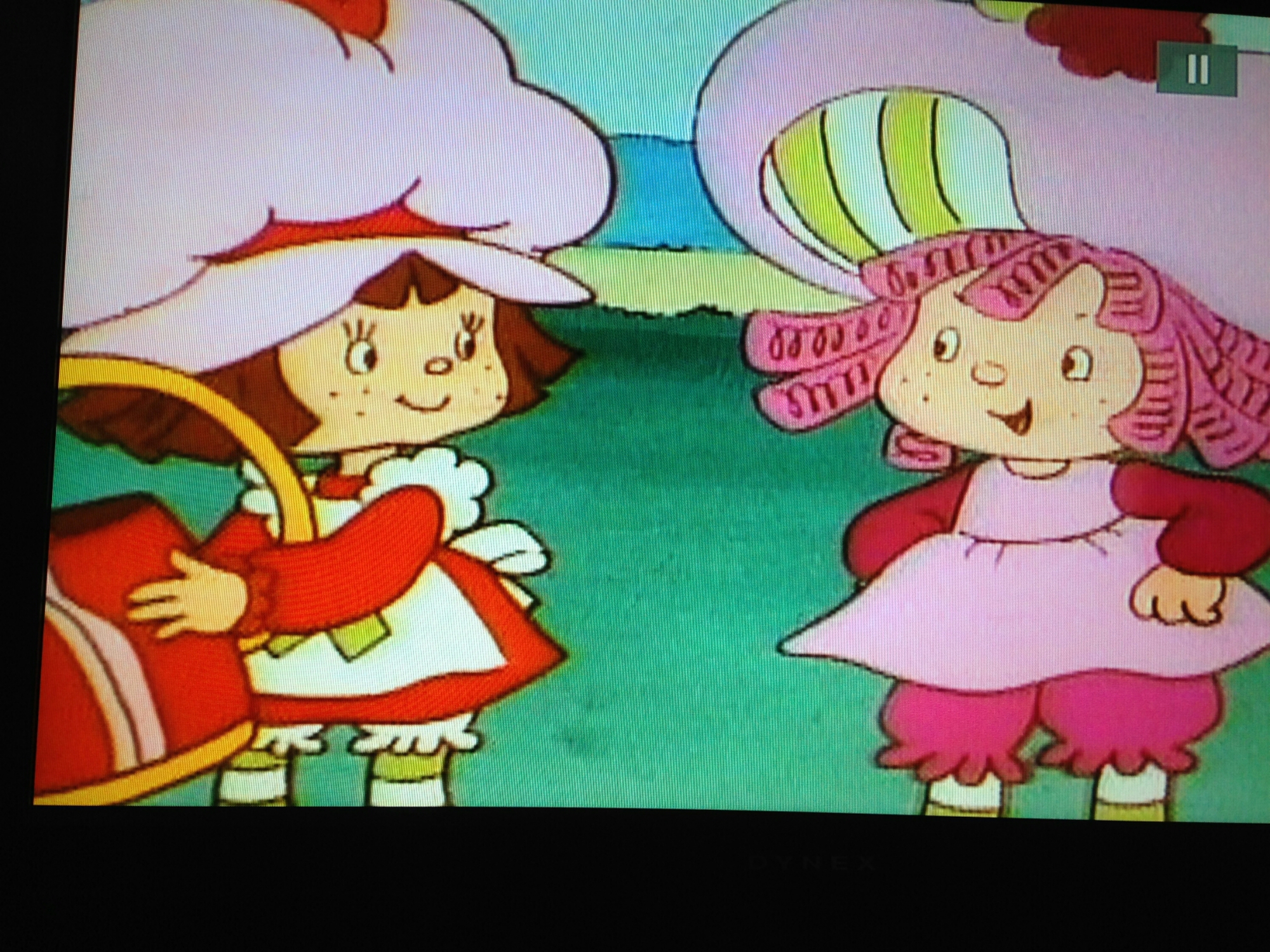 She says that Shortcake is 7 if she’s a day, and is chastised by our loafer, Huckleberry not to say what she thinks, until she thinks about it a little more. Cause, ya know, she’s a girl and all. There’s a baby, Apple Dumpling. Um, they’re all kids, and the only grown up is a purple queen. Where’d this kid come from? Hashtag Mysteries of Berry Land.