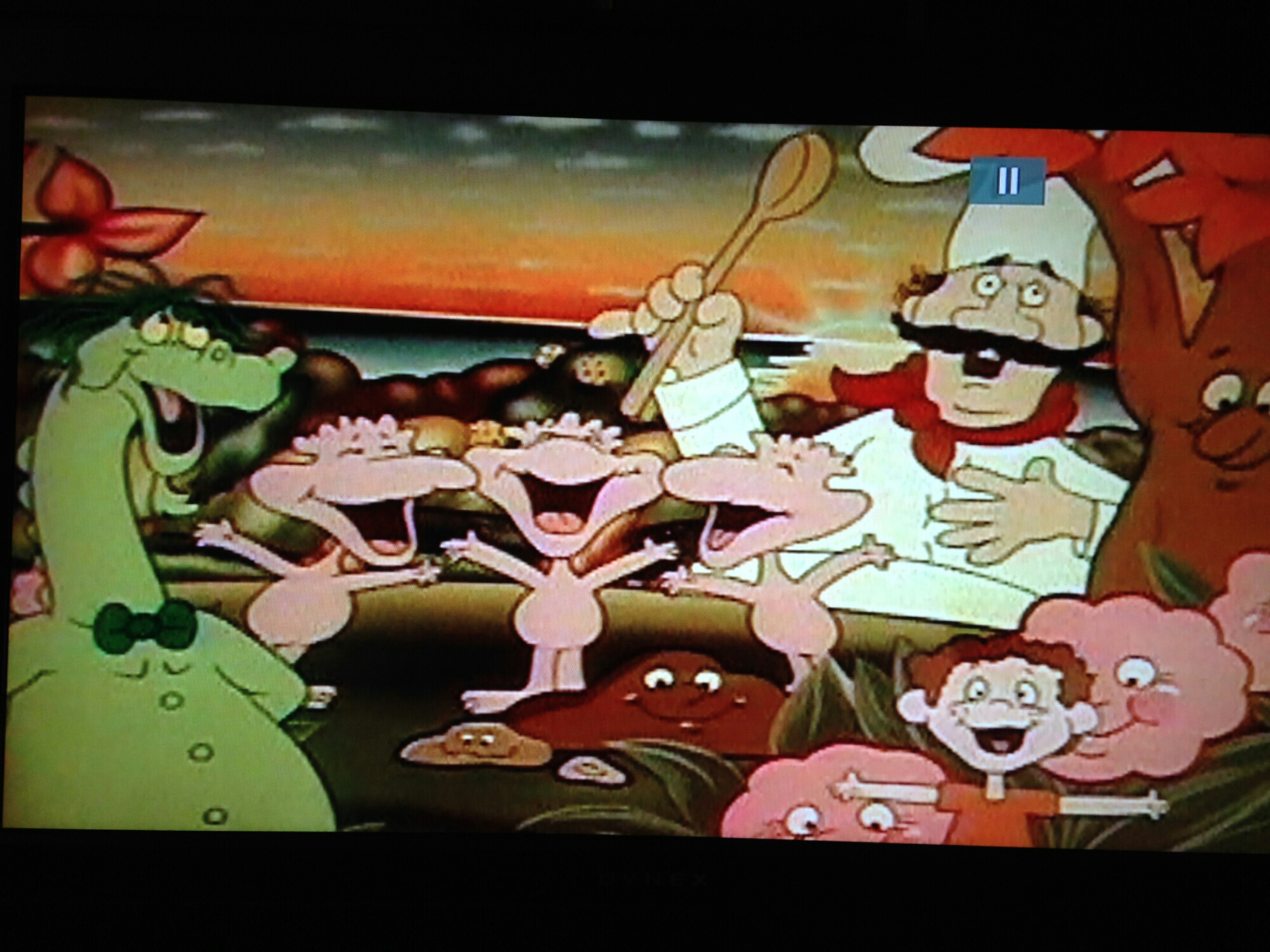 Lucky for Puff, Jackie didn’t listen. He brought Very Long with him. The pirate/baker says what the Living Sneezes need is his chicken soup. He then proceeds to ladle it all over them. I know it’s supposed to be soup, but it looks like something else. I won’t even go there. I’m just gonna put this picture right here.