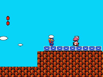 Birdo started out as a villain in Super Mario Bros 2. Unlike Wart and Fry Guy, Birdo is a boss that we encounter several times through the game, with various abilities. Mostly an egg spitter, occasionally fireballs are hurled at Mario, Luigi, Toad, and Princess Peach/Toadstool.