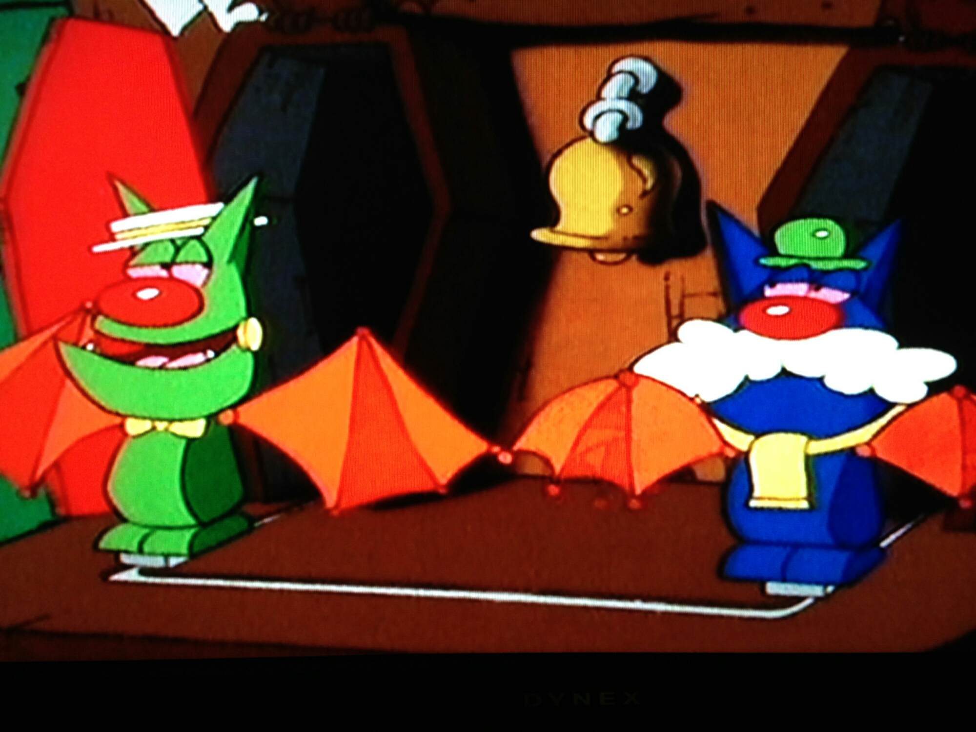 Igor tells Duckula it’s time to go home, but he doesn’t want to end the party. The bat clock strikes midnight, and the castle returns to Transylvania. They still never explain this phenomena. Near as I can tell, the castle travels in space, but not time, and at twelve, it returns with or without it’s passengers. Duckula, Igor and Nanny get left behind, and are seen standing in the desert sun, trying to hitch a ride home. Alright, um, vampire duck standing in the sun. Opening credits say sunlight kills. I assume because he was revived not from blood, but ketchup, he’s not limited to traditional vampire lore, and is a day walker. Maybe they covered it in Danger Mouse, before they spun him off. Anyway, I’ll leave you to ponder that. Until next time!