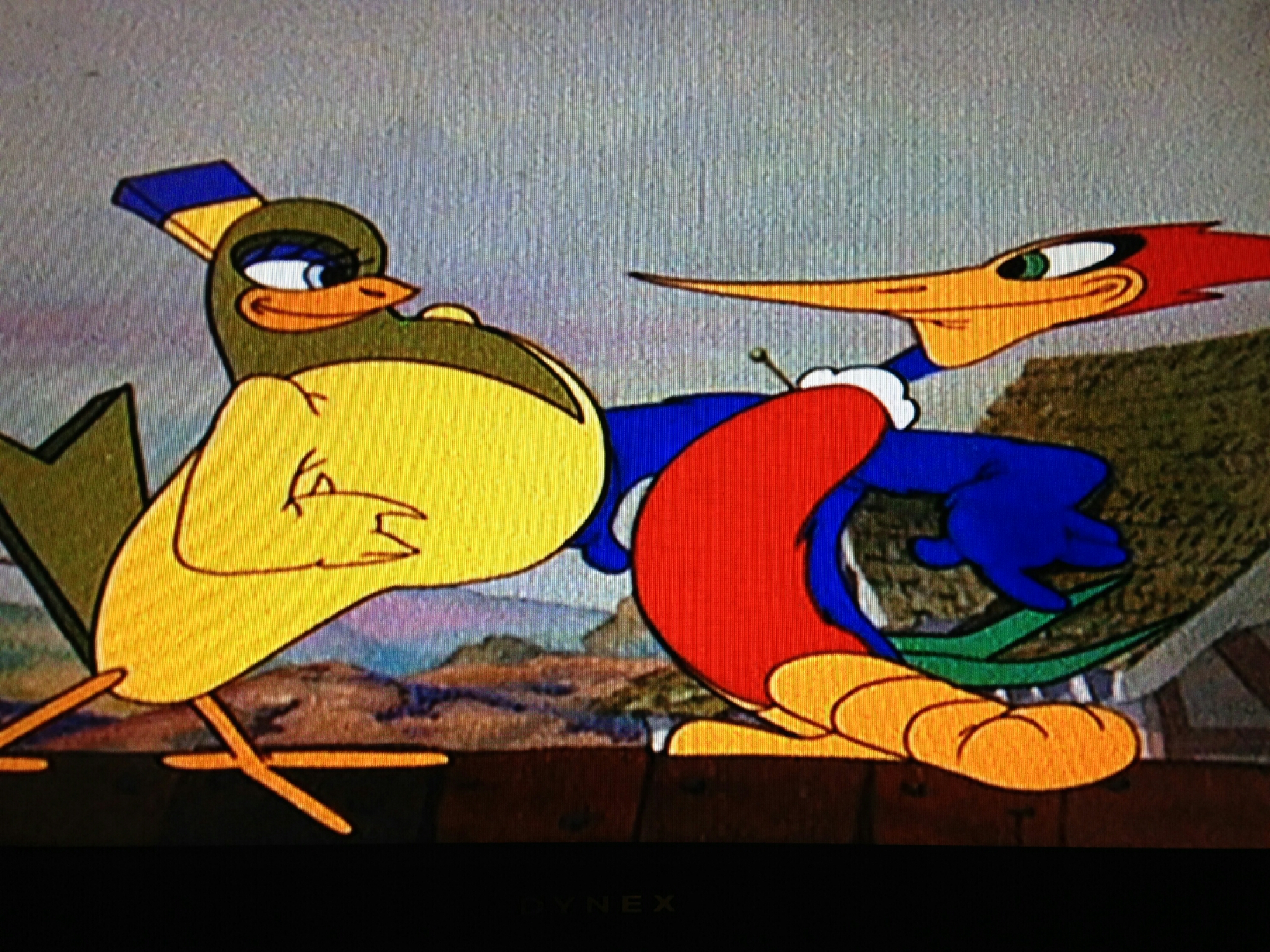 We see some crows in masks, they’re reading a guidebook on Castle Duckula, and decide to go rob it. As they scale the outer wall, we hear Nanny ooohing as she dusts. The crows hear it, and assume it’s a werewolf. Nanny says to herself, “Give it a tickle with me feather duster, and it’ll be as right as rain.”. The crows think she’s talking about the werewolf, and say “She’s tickling it with a feather duster, no wonder it’s howling”. I love the Brits.