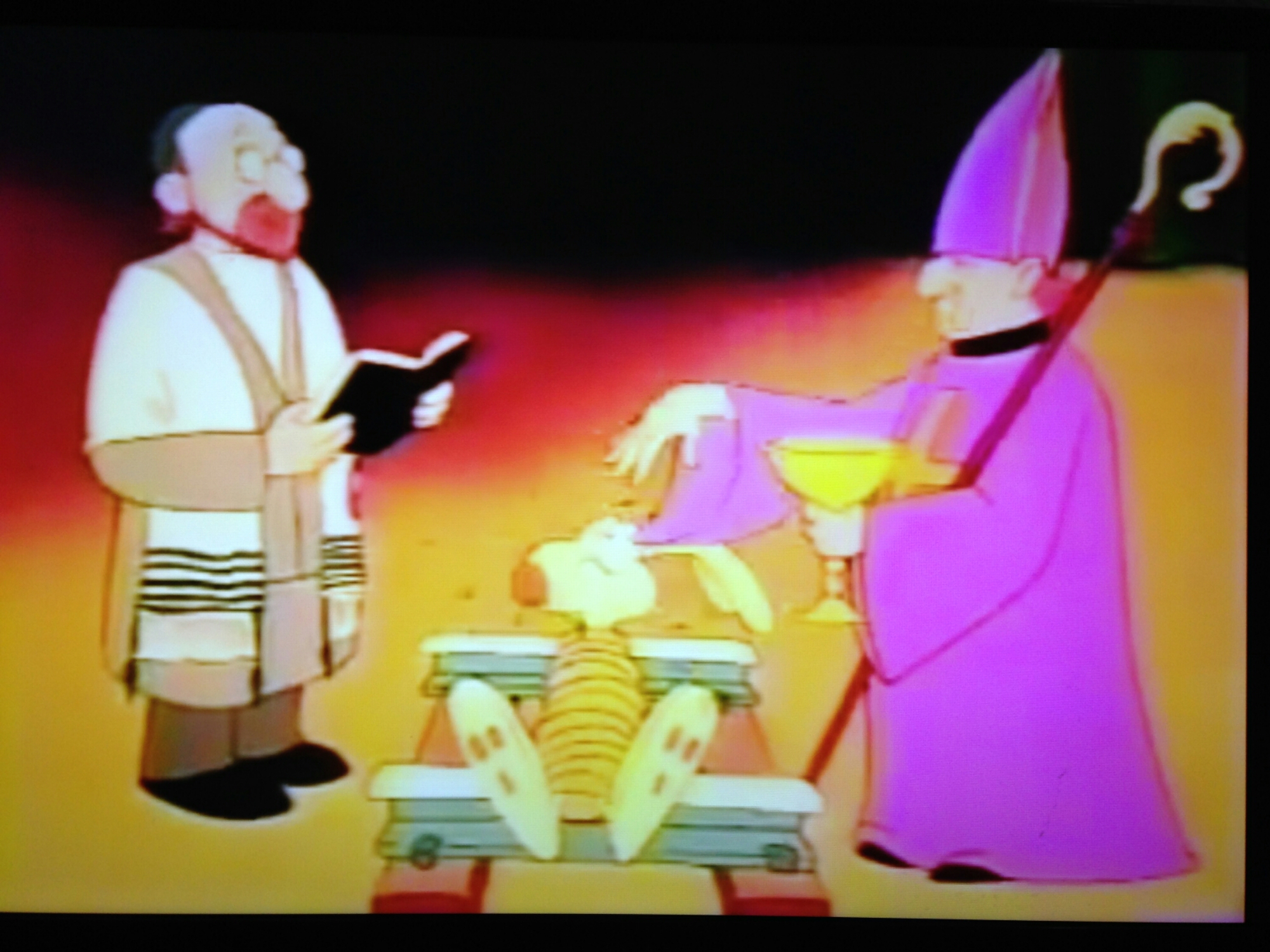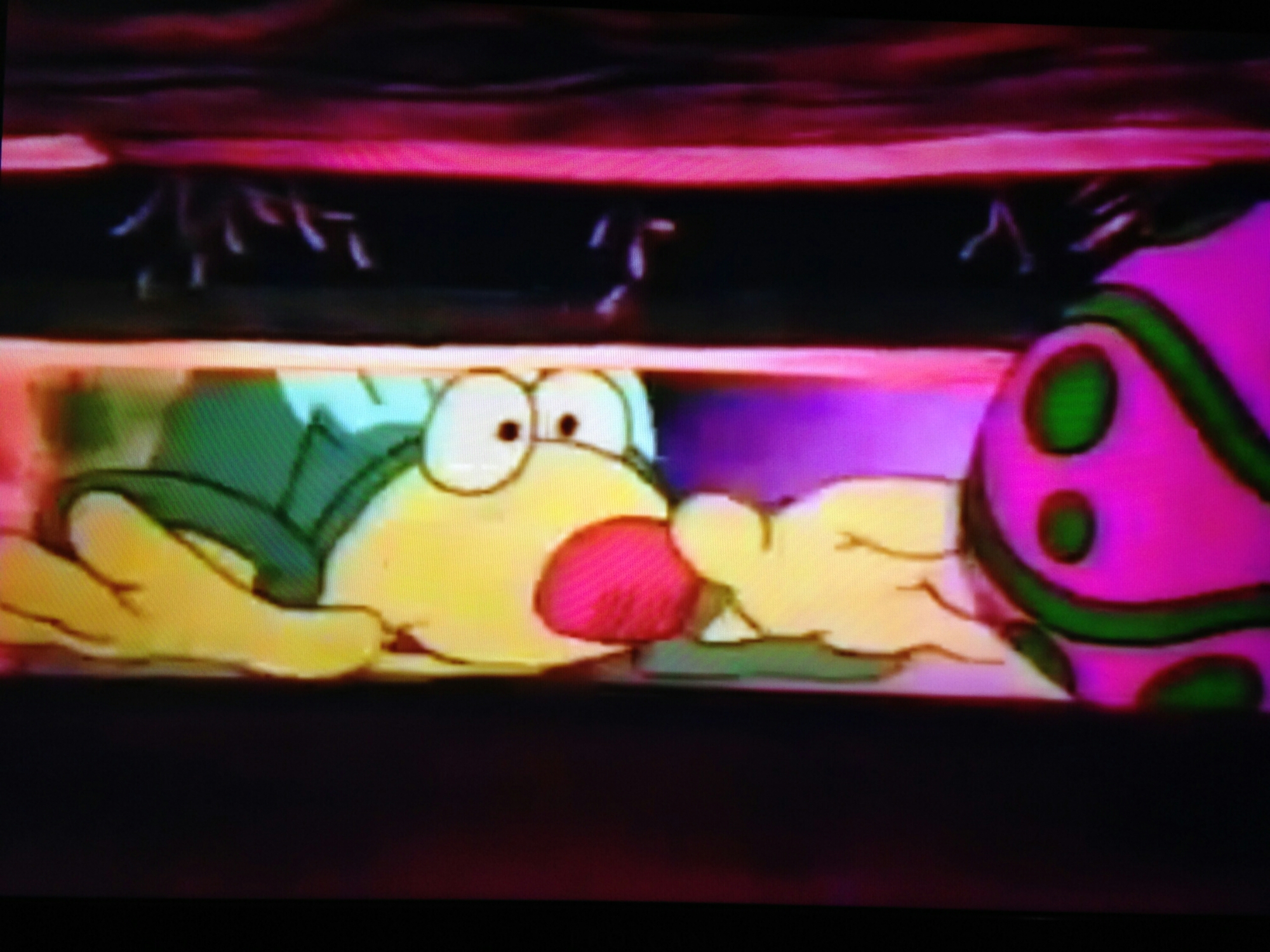 My apologies to the readers, but I just looked up at the screen and caught a glimpse of the dead eyes of what once was a mouse that didn’t make the cut for the Critter Parade at Chuck’e Cheese. We are treated to more Splinter wisdom and his one and only song, thankfully, Skipping Stones. But just as shit is about to get really deep, an ominous voice comes over and we see Baxter Stockman’s lab, and surprise, we are told of an ominous plan by Shredder. Who hates music!!! Ahahahaaha!! End quote. I be cranky too, let’s just say this guy’s costume budget was minimal.