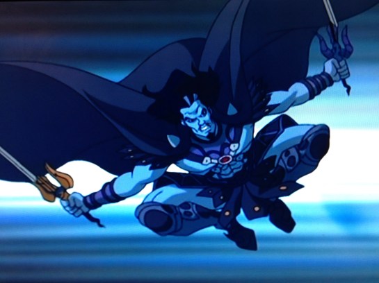 The wall explodes, and Evil-Lyn, Keldor and company storm the chamber. Keldor is serving up all kinds of blue skinned, long dark hair, goatee, warrior realness. Sexy, blue skinned villain, half brother destined to be King… Michele, what does that remind you of? Sounds a bit like Loki & Thor. Maybe that’s just me. By the way, sorry for the possible spoiler to those of you who may not be well-versed in Eternian history. Actually, no I’m not. Keldor & Randor are related. That’ll make things all the more interesting for the rest of the series. There’s no drama like family drama.
