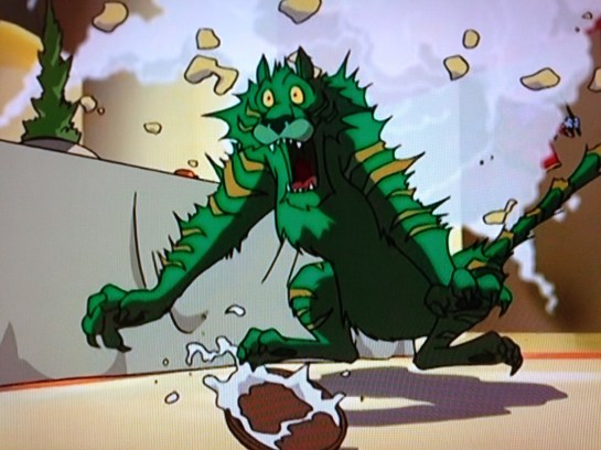 I am Adam, Prince of Eternia. Defender of the secrets of Castle Grayskull. This is Cringer, my fearless friend. Fabulous se- Damn, I hate it when my voiceover gets interrupted by blasters. This ain’t your daddy’s He-Man. Well, I suppose it could be, depending on your age. All I mean is, this ain’t the page boy haircut, pink tunic, purple tights and undies He-Man of the 80’s. There may not be as much homoerotic content as the previous incarnation. And no, I don’t mean The New Adventures of He-Man. I have it, but can’t bring myself to watch it yet. I’ll just focus on this one, even though it’s a tad too new to be retro. Let the geeks begin!