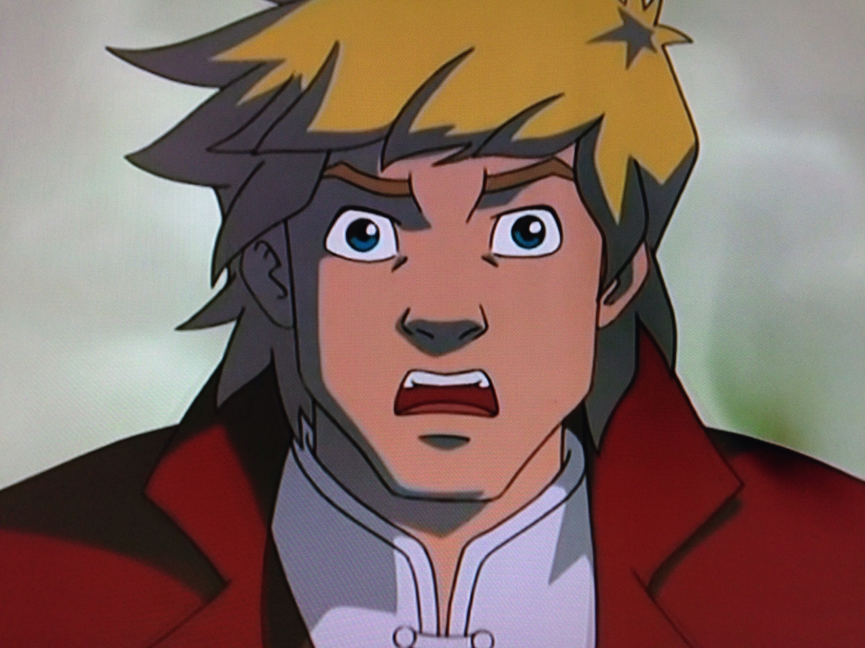 Flash forward, let’s say, sixteen years. Adam and Teela are sparring, and she’s winning. She says she’ll take it easy on him, since it’s his birthday. He doesn’t want her doing him any favors. Maybe this one doesn’t like girls either. Let’s evaluate. Muted purple pants, with lether belt. White sleeveless shirt with red vest. Blonde, bouncy hair. Piercing blue eyes. I’m gonna go ahead and call it. Somewhere, over the Grayskull, way up high… Adam and Teela continue sparring, but this time on floaty disc things. Think Magneto escaping the plastic prison in X2, but without the awesome balls. Well, Adam may have awesome balls. Only Man at Arms knows for sure. He warns Adam that should the forces of evil attack, he needs to be ready. Adam says that his father drove them away years ago. They’re history.