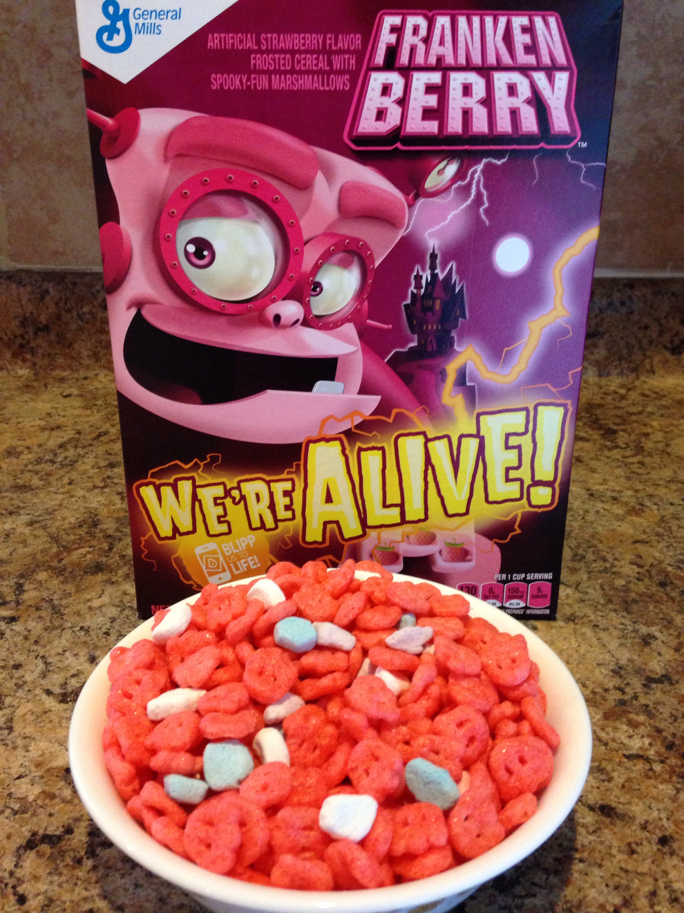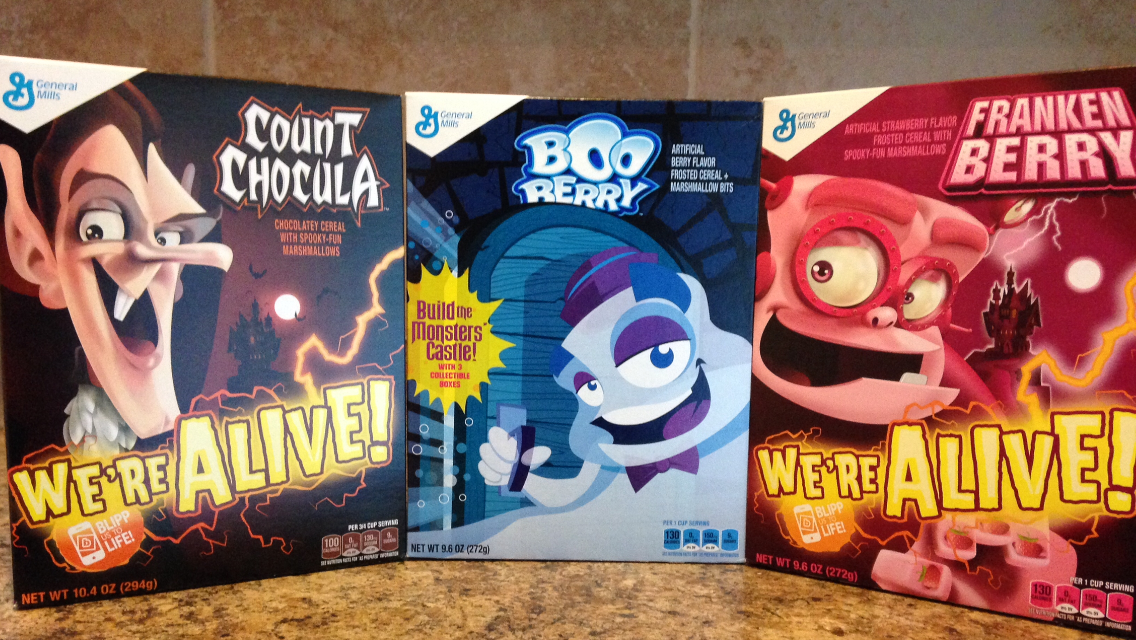 Now, on to the cereal. The cereal pieces are berry flavored ghosts. The marshmallows are bats and such. The cereal itself reminds me of Berry Kix. I used to love that cereal. Finally got used to a non-frosted cereal with marshmallows. Similar to Chocula, and Frankenberry, it was like a berry version of Lucky Charms. Can’t decide if this one, or Frankenberry was my favorite of the three. I just know that Chocula was the bottom. I asked Frankenberry. He confirmed it.