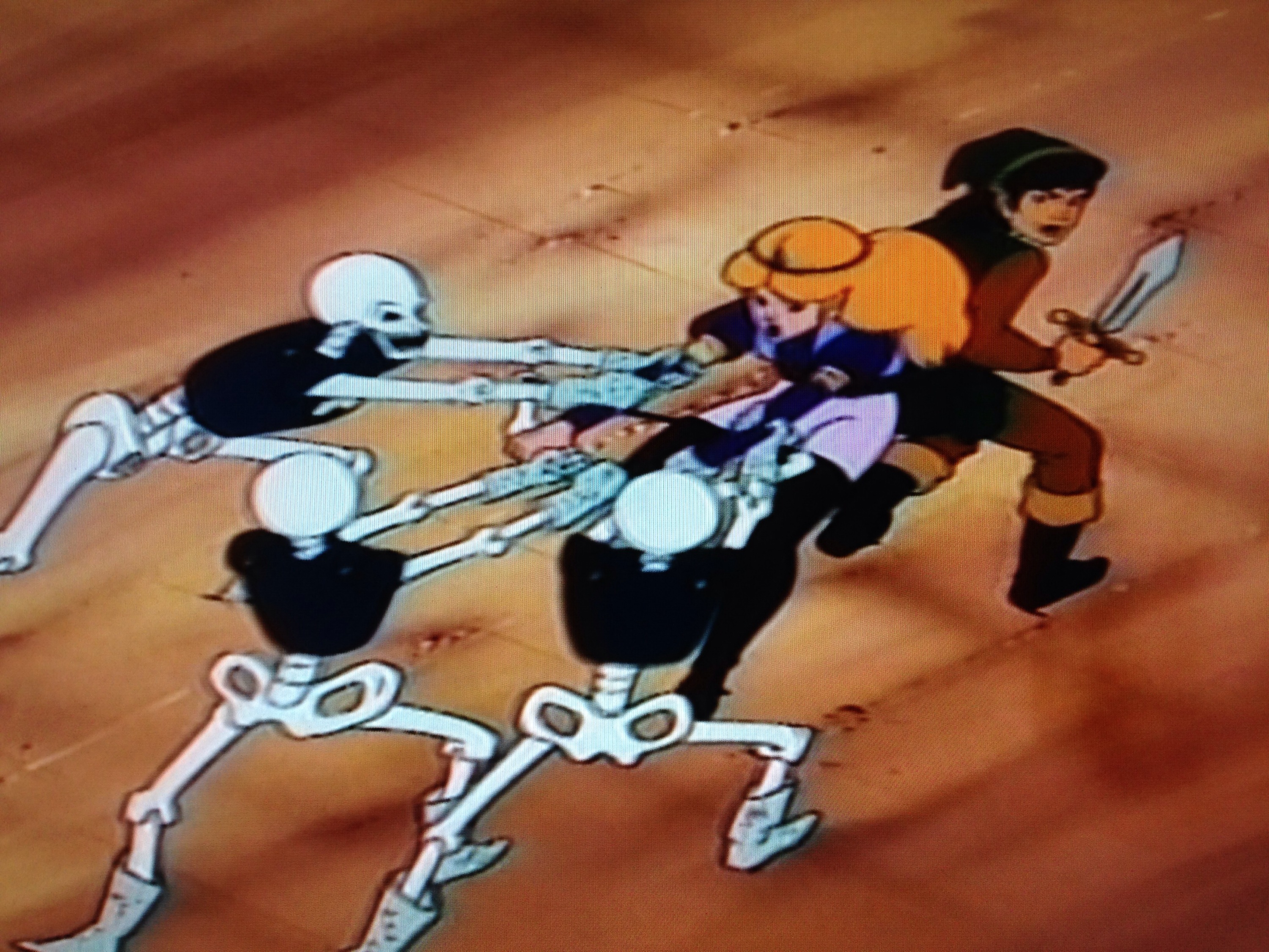 The disguise is enough to doup the gang and Turkie’s presence goes unnoticed. The gang finds a book about Turkey that says they can kill Turkie if they remove the magic talisman he wears around his neck, although the rest of the instructions are written in a code. Of course.