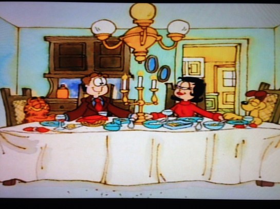 Turkie, however, has beaten them there, and disguised with a pair of Groucho glasses, the sheriff, dressed as a turkey for a “pagent” lets him in and the two share a nice cup of coffee together.