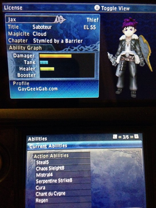 Another item that I briefly touched on in part one was the job system. As you advance through your missions, more jobs become available. Like the airship and magicite, you have to prove your worth for some, while others are unlocked by completing certain tasks. For example, the Beastmaster job is made available after you’ve created 20 different monsters in the lab. Beastmaster’s special ability makes it easier to get atmaliths, and continue to grow your monster army. The Thief job allows you to steal items from your opponents, making it easier to create certain items. Now, speaking of item crafting, there are some excellent options available. You can get classic character signature outfits, such as Sephiroth, Cloud, Vaan, Yuna, Lightning, etc. One thing I don’t like is that the outfits are gender-locked, so your male character can’t wear Yuna attire, or your female couldn’t be Sephiroth. It won’t even give you a preview. Not that I’m necessarily into cross dressing, which for the record, was a MAJOR plot point in FF VII, but they could have made a male/female friendly version of these pieces. What if you’re a strong independent black woman who don’t need no Moogle, but you feel like dressing like the one-winged angel? Well, sorry, peaches, you can’t. It just seems like a stupid place to draw the line. Seriously, are they saying it’s demeaning for the men to dress in the clothes that are fine if you have boobs and no penis? Are the ladies somehow too inferior to be able to pull off Squall’s look? I think not, but I’m a writer, not a game designer, so my hands are tied.