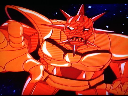 Over the PA we hear Moon Burst, minus 16. Mon Star starts punching the solid metal sheet. This may be his last chance. Moon Burst, minus 9. Minus 7. More punching. Minus 5. Shot of the rays from the moon. More punching. Side note, who are they counting down for? For us the audience? Dramatic tension? To taunt Mon Star? At any rate, a punch causes a hole in the metal, and wouldn’t you know it, the light shines directly on the eye patch. Mon Star starts saying Yes like he’s having mini orgasms. Maybe he is. Moon Star burst, minus 2. Minus 1. Zero. The solar flare looking energy, radiates in all directions, illuminating the prison, and Mon Star. Ancient spirits of evil… Oops. Wrong show. Similar speech and voice though. Moon Star of Limbo give me the might, the muscle, the menace of Mon Star! He gains armor, and a fancy skull head/helmet with spikes on it. It just screams badass. Normally I like villains, but I’m not getting anything from this one. He tears open the metal screen, and breaks his cell doors. The guards show up, and he destroys the robot one. He then goes to the window, cries out to Space Xavier that he’s free, and flies into space, cause why not? Then there’s a giant space squid. Yes, I’m still serious. Sky-Runner is its name, and Mon Star says he’s missed him. Squid spreads his tentacles and fires an energy blast at Mon Star. He’s grown wild, and forgotten his master. He needs a little persuasion. Mon Star’s eye patch eye unleashes a red star, that goes after the squid. Squid tries to escape. It’s worth noting, they’re in the vacuum of space, and the squid has gills, despite a very clear lack of water. The star circles and hits the squid, giving him Battlecat type armor. Together, they will terrorize the Galaxy of Limbo.
