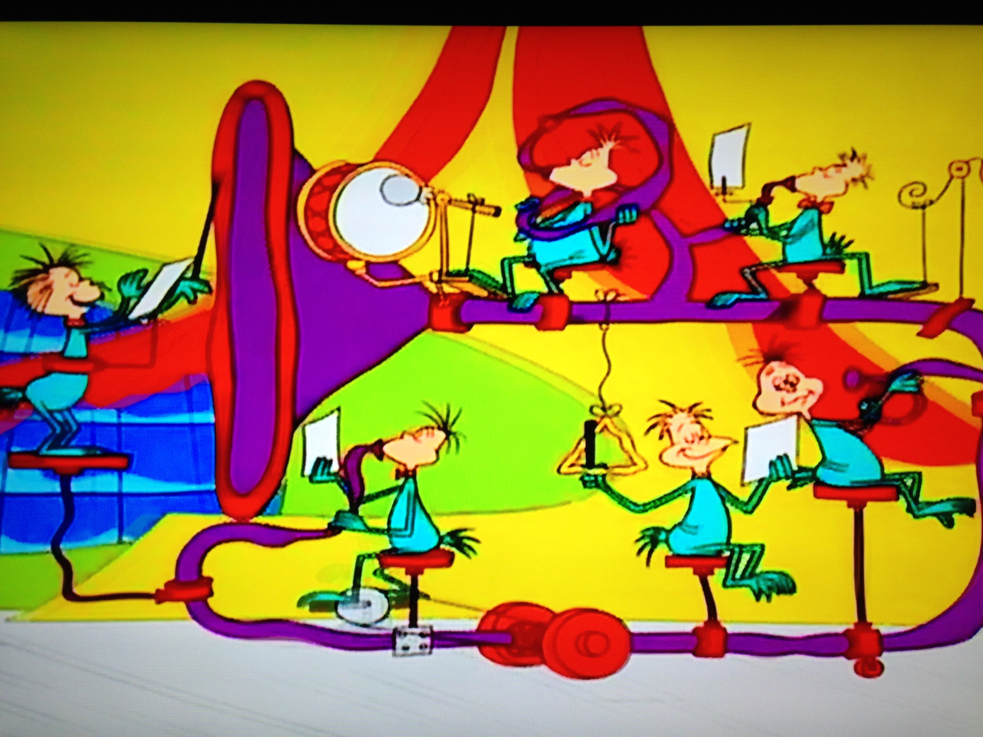 This is a Chuck Jones cartoon. He’s a legend in Looney Tunes land. You can already tell this is gonna be good. Like when you see the Trojan logo on your cond- um, where was I? Yes, the cartoon. Pan past a mountain as the snow falls. The song starts in the background, and I need captions cause Seuss made up some fun words that I just can’t spell. Fah who for-aze, dah who dor-aze. Welcome Christmas, bring your light. Fah who for-aze, dah who dor-aze. Welcome in the cold, dark night. As the Whos sing, hand in hand, they pick a tree, and topple it to take back to Who-ville. Welcome Christmas, fah who rah-moose. Welcome Christmas dah who dah-moose. Welcome Christmas, while we stand, heart-to-heart and hand in hand. Warm fuzzies as the Whos raise the tree in the center of town. There’s a song sung about decorating, which I will share with you in a moment. I’d like to point out that based on the song, it’s Christmas Eve, and the entire town is getting ready for the holiday. That’s a day away. As in tomorrow. I’ve never understood the decorate the day before people. Even if you don’t want to deal with it for a month, at least let yourself have it up for a week. Having things up is a good thing. I remember this one time, when- what? Fine, back to the song. Your loss. It was a good story. A man triumphed over impotence, and- alright already! Sheesh!