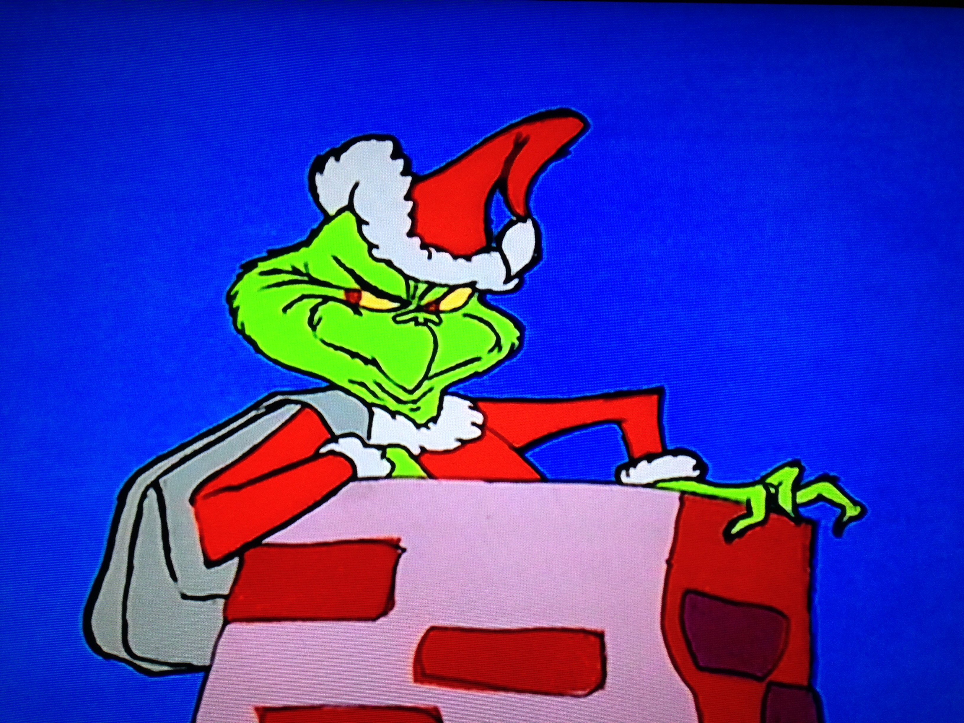 They reach the first house, and Max steadies the ladder. The Grinch slid down the chimney, a rather tight pinch, but if Santa could do it, then so could the Grinch. He got stuck only once, for a minute or two, then he stuck his head out of the fireplace flue. First to go, the stockings. The Grinch pulls out a magnet and uses it to remove the nails holding them up. Next, with a smile most unpleasant, he took every present. Pop guns, pampoonas, pantookas and drums, checkerboards, bizzel-binks, popcorn and plums. Then, for whatever reason, rather than opening the door, he sends his stolen goods UP the chimney, where upon the roof, he then has to send them back to ground level. Me thinks the Whos aren’t the only dim bulbs in the land. We get another verse of Mr. Grinch as the stealing montage plays. During the thefts, his poor dog is the one having to carry all the sacks to the sleigh. All the Grinch really needs to do is take anything that makes noise, and all the batteries as well. There will be unhappy kids, and statistically a few moms too, but problem solved.