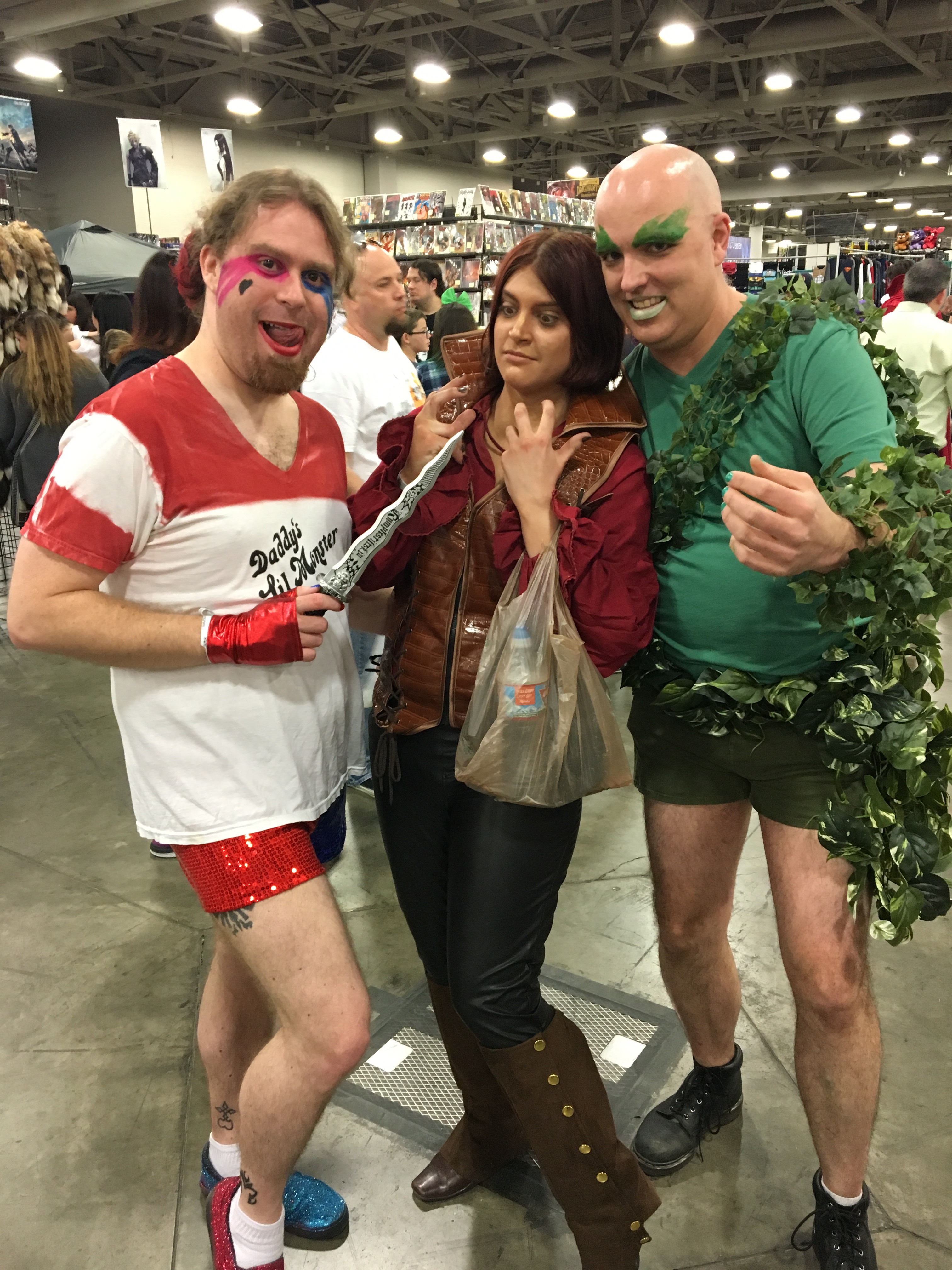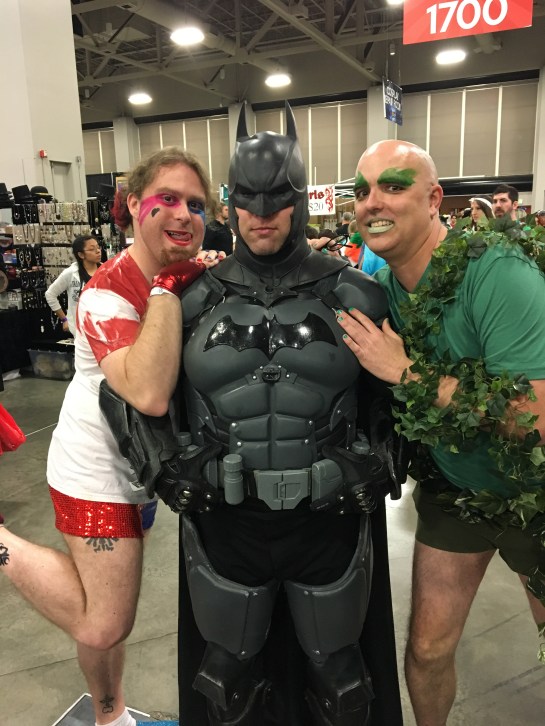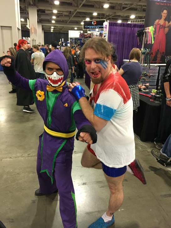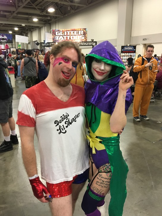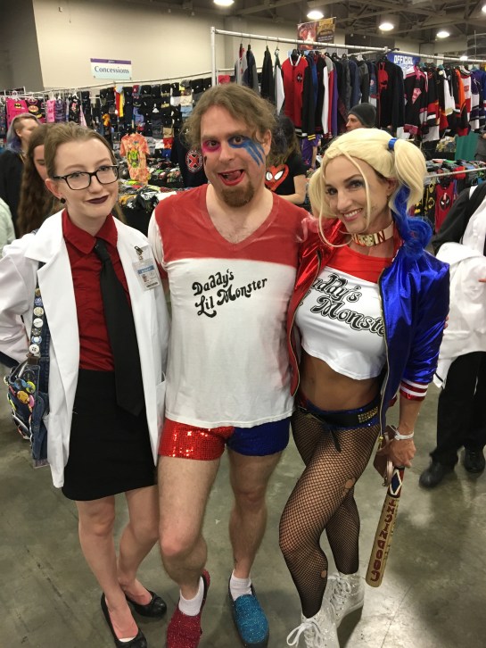 Greetings, geek fans! Though FanX was two weeks ago, I promised to get my pics up and Joshie always delivers. Thirty days or it’s free. Wait a tick, they’re all free. This Con marked the return of Joshie Quinn, and the debut of Poison Brivy. I lost count of the people who asked us for pics, as well as the ones who asked where Catwoman was. Several people lit up at the sight of us, saying they didn’t know they needed this in their lives. I sought out other gender bent cosplayers, as well as fellow Bat-villains. One vendor liked my look so much I got a free small Harley print as long as I posed with it. I gladly obliged. It was a great event, and I can’t wait for the next. Without further delay, let’s the geeks begin!