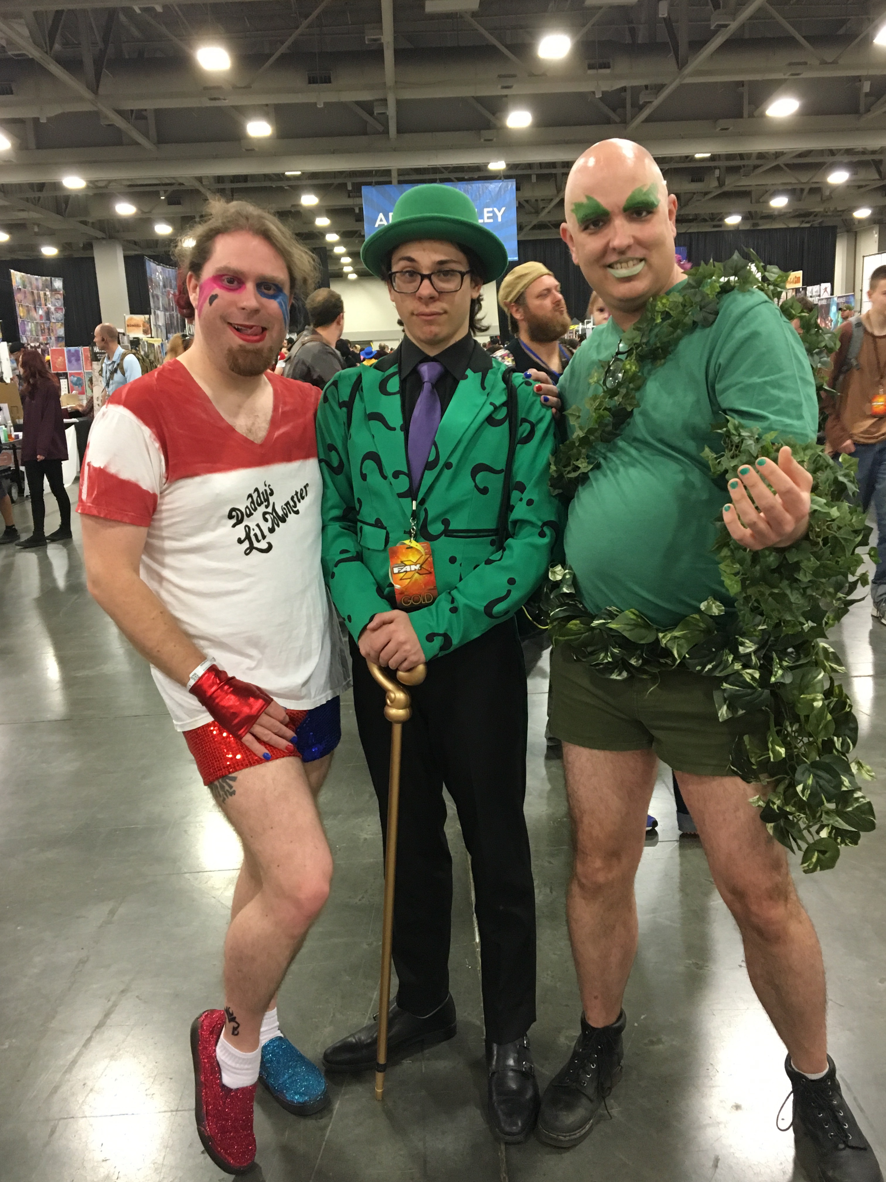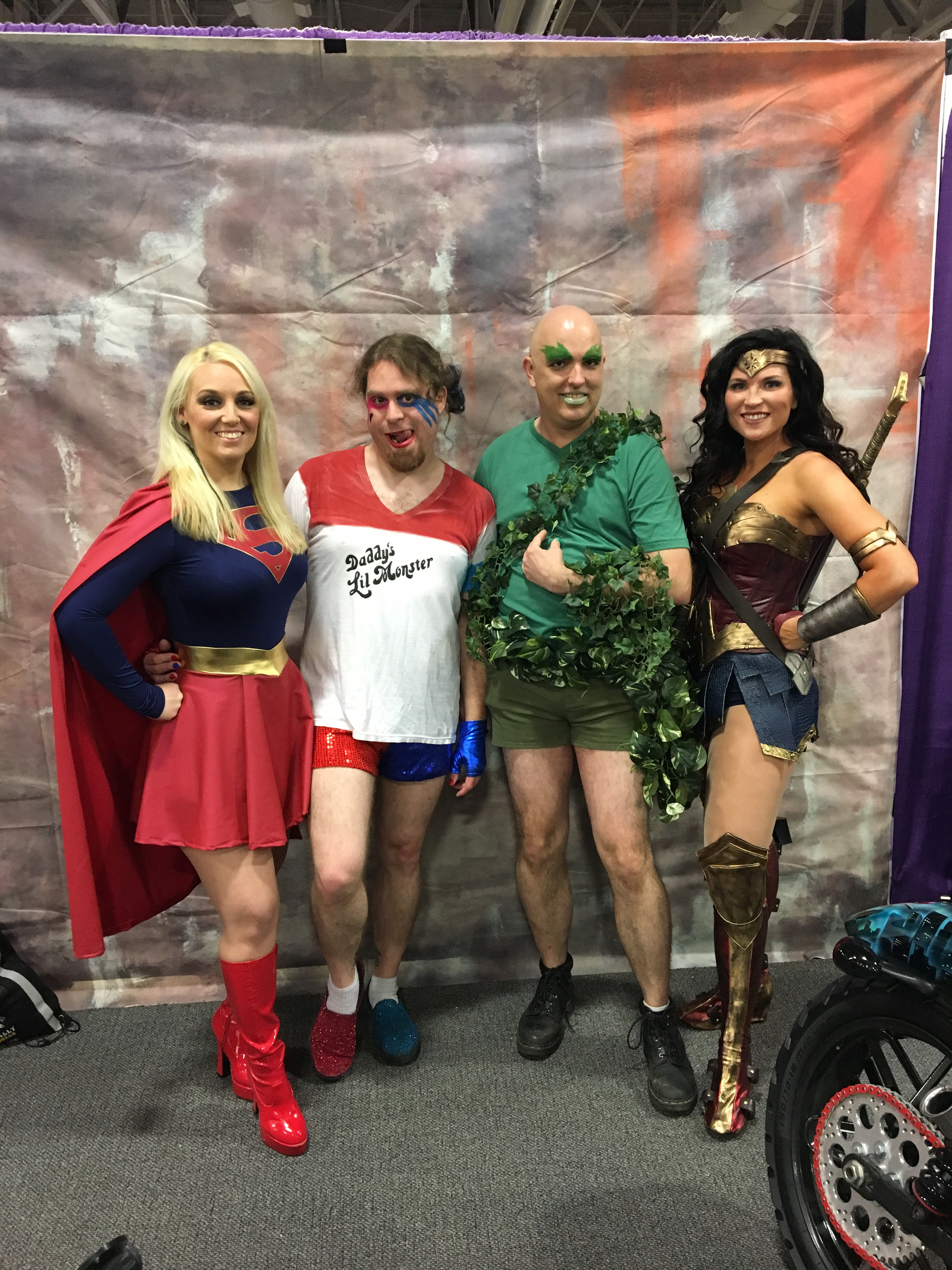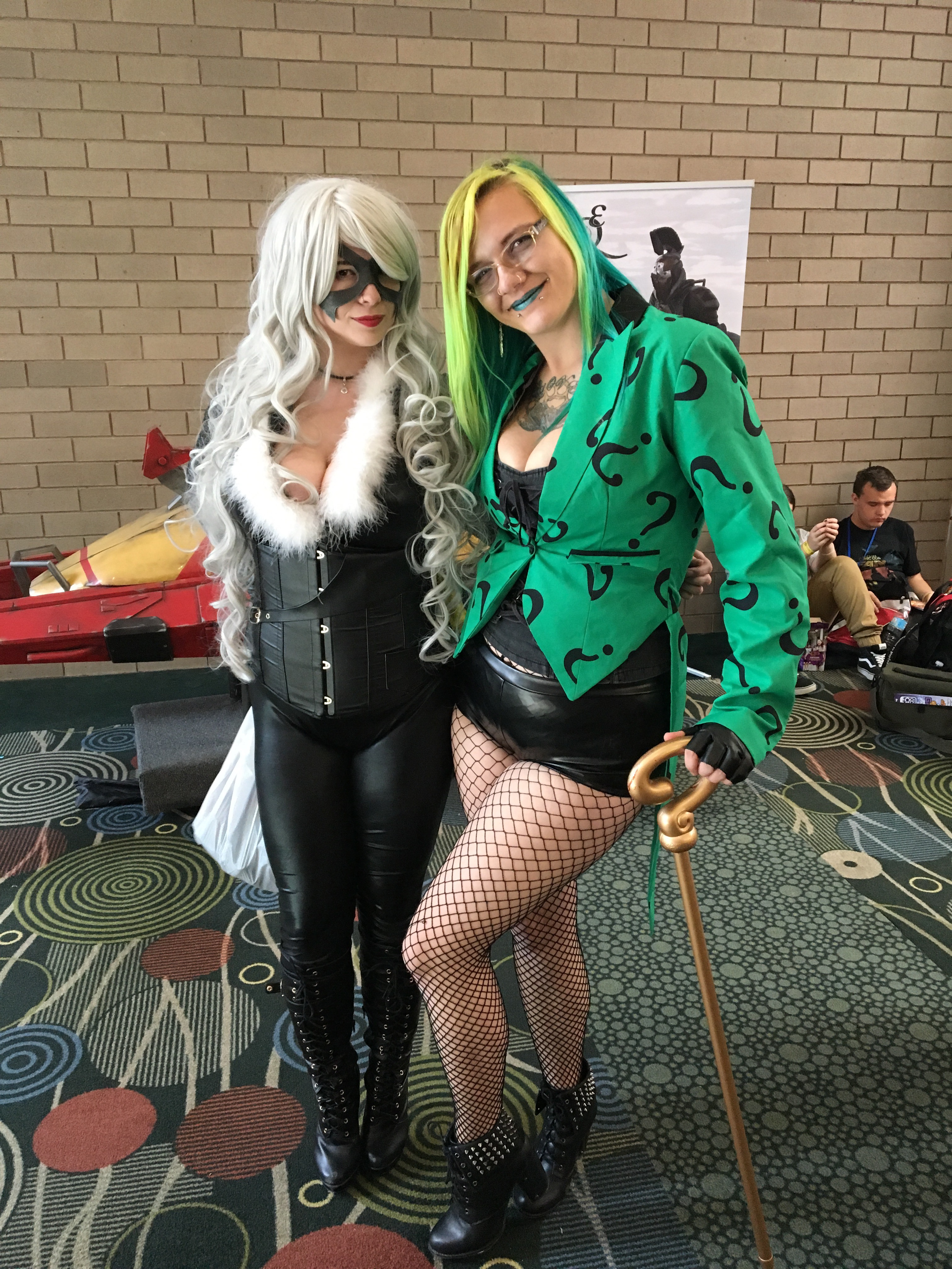 Greetings, geek fans! Though FanX was two weeks ago, I promised to get my pics up and Joshie always delivers. Thirty days or it’s free. Wait a tick, they’re all free. This Con marked the return of Joshie Quinn, and the debut of Poison Brivy. I lost count of the people who asked us for pics, as well as the ones who asked where Catwoman was. Several people lit up at the sight of us, saying they didn’t know they needed this in their lives. I sought out other gender bent cosplayers, as well as fellow Bat-villains. One vendor liked my look so much I got a free small Harley print as long as I posed with it. I gladly obliged. It was a great event, and I can’t wait for the next. Without further delay, let’s the geeks begin!