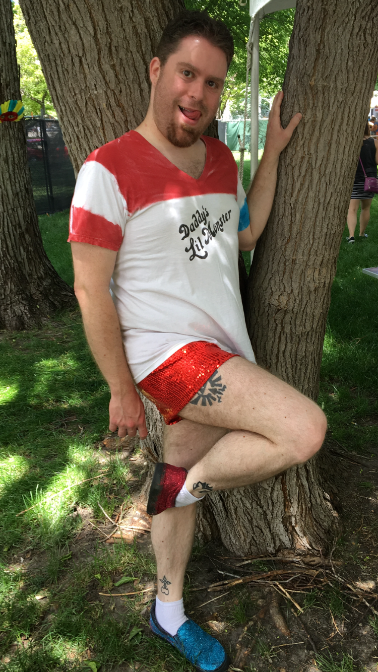 I’ve attend the pride festival every year since 2001. I even had a booth for my book series a few years ago. Pride for me was always a chance to get out and be among my community, without the safety of a screen to hide behind. It’s a great opportunity to see the various walks of life that make up our LGBT communityas a whole. There’s also plenty of eye candy, as long as the weather is nice; which thanks to fake news, er, climate change, it usually is. The temperature rises, and the amount of clothes people wear lowers. It’s a feast for the eyes, and a personal highlight of the festivities. The main reason for that being the majority of people going around practically naked are the ones you’d associate with the gay community. It’s mostly twinks and the jock/gym gays. The “good-looking” among us that we all secretly aspire to be. Though not bold enough to parade half naked in public, the closest I chose to get was my Joshie Quinn look, sans makeup. I’m confident in my legs. I’m a centaur, we’re good kickers.