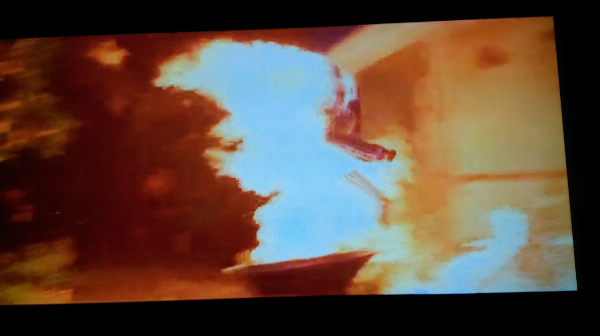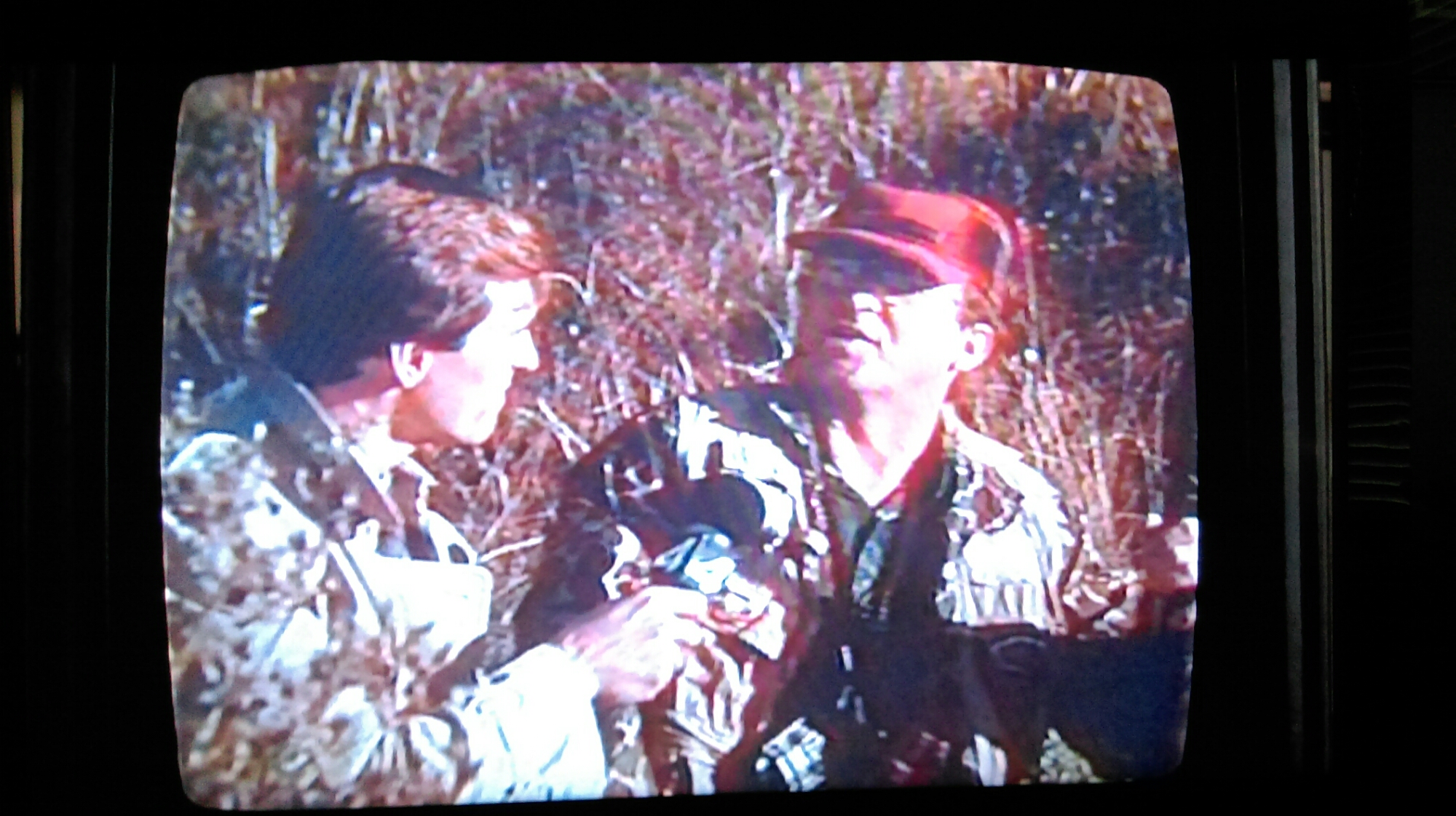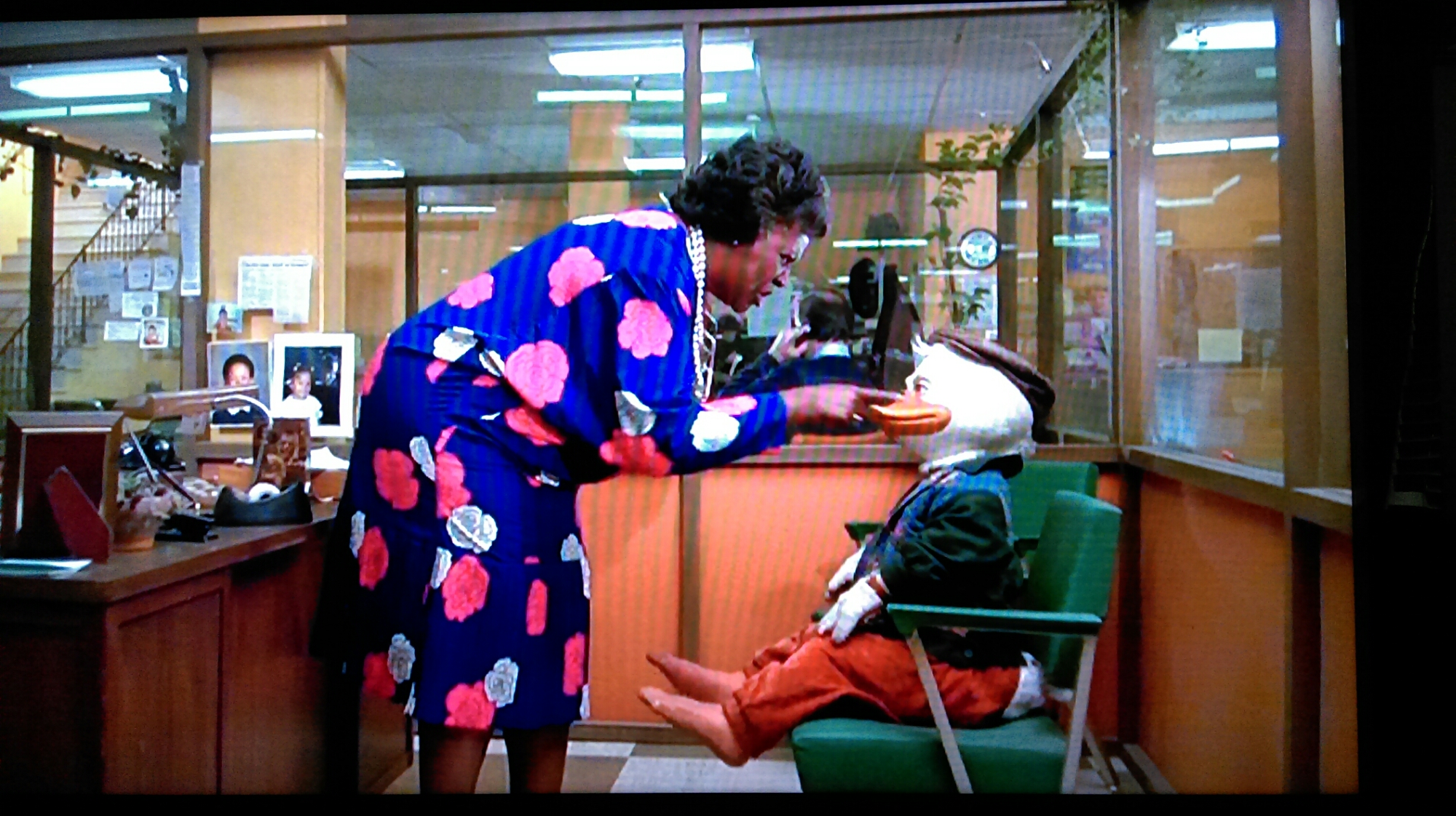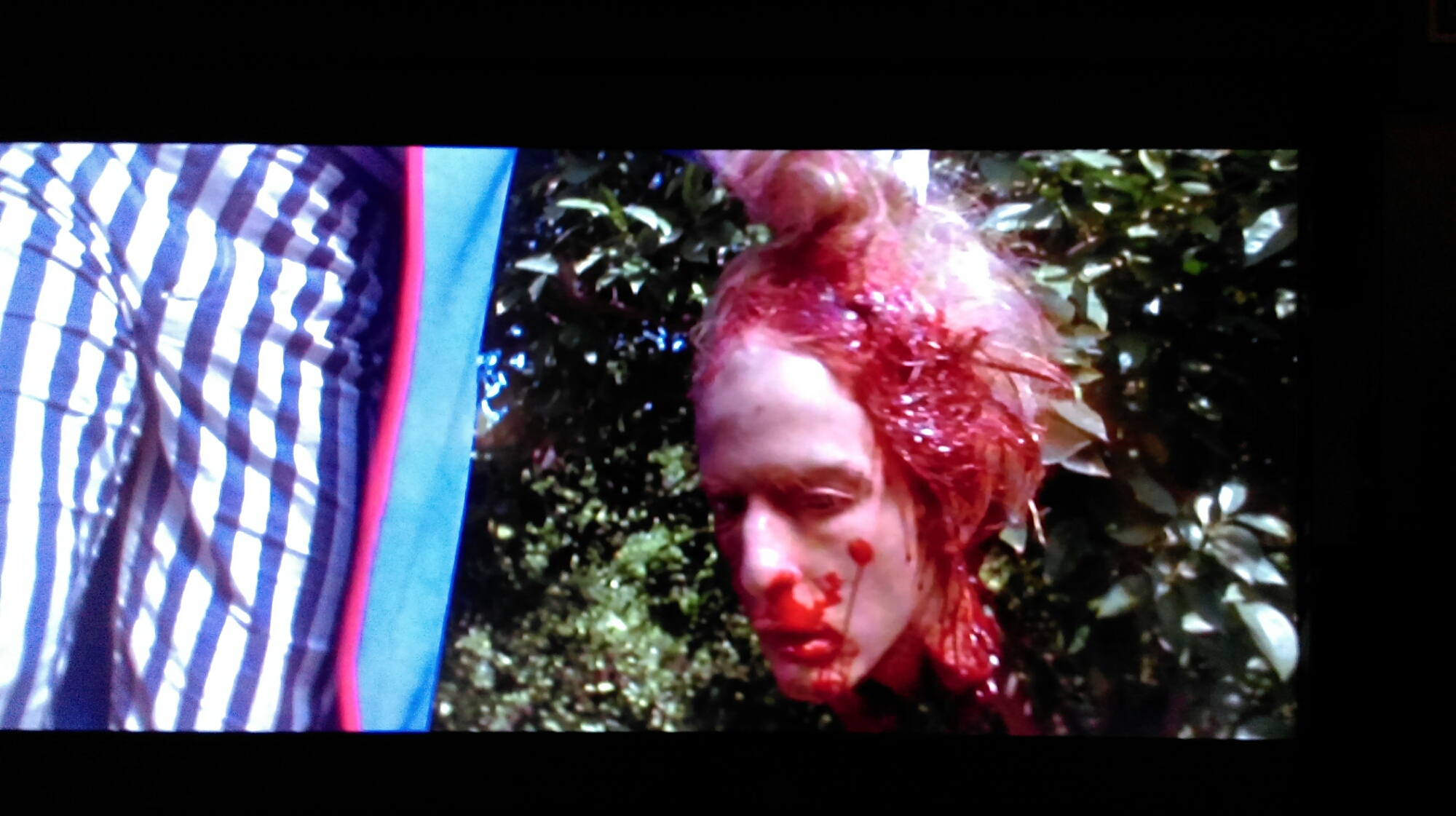 Her holiday joy is soon interupted, however, as there is rustling in the thicket and she struggles to get away. Before she can get to saftey, we catch our first glimpse of the killer. A puppeteered turkey head pops out of the bushes and utters the first of many zingers, “Nice tits, bitch!’ and kills her. And roll credits.