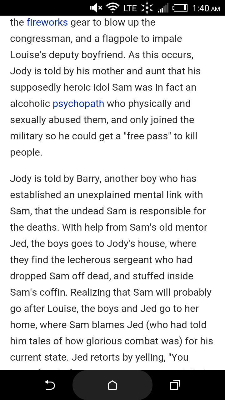 They break the code, and find out that the only way to kill Turkie is to burn him at the stake after saying a demonic prayer backwards. They head to his tipi to catch him in his sleep talisman in hand. They say the prayer and get ready to burn him, as he thwarts them yet again, and runs outside only to be shot by the old hermit, and lands in a dumpster full of radioactive waste, bringing turkey back to life. Thinking they have killed him, although, clearly they didn’t kill him the way the book instructed, they head back home to relax, where Johnny makes the best remark, “I might have lost my whole family to that turkey, but at least I found me a girlfriend.” Thankfully, Turkie, now stronger, comes in the house, kills Darren by cutting out his tongue and ripping out his heart; then attacks Johnny with and electric knife, and with one last football pun dies. Kristen lights turkie on fire with an aerosal flamethrower and kicks Turkie into a pile of wood, thus burning him to death, as originally instructed.