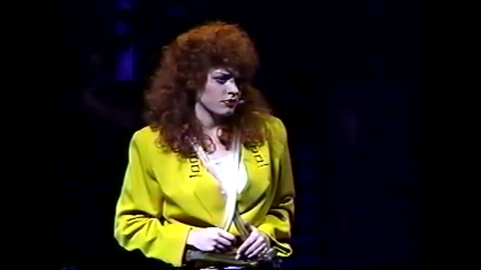 The show opens and we see several equipment trucks and roadies coming in to set up the stage in that very early 80s vhs editing that oh so many music vids of the time used. And then again amazing vhs effects, we see a crowed venue and an empty stage. Then poof, and quick flash and the music starts and up out of the stage come the turtles decked out in quintessential 80s glamband rock attire. But no hair. After all they are turtles. To give them hairband hair would just be ridiculous. So Leo an Mickey are playing a flying v’s, and Don is on bass. Raph is on vocals. Although I have a memory of Raph on the keytar at some point. Oops, my bad, Don has the keytar, apparently they don’t know what the fuck is going on either. They can change instruments so quickly like that because they are ninjas.