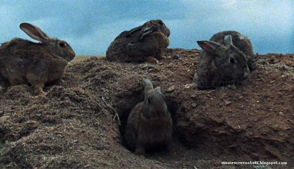 The film opens with scenes and narration about plagues of rabbits ravaging the southwest valley, and parts of Australia. It’s a rabbit war!!
