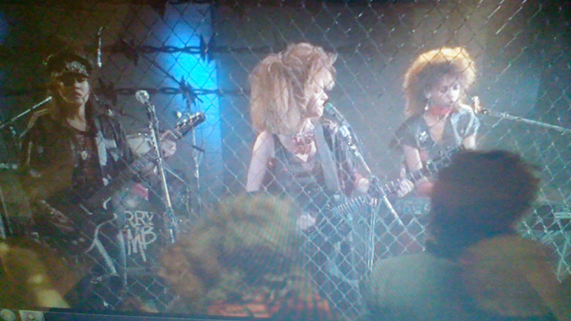 Of course since they are rockband groupies and not actual thugs, they do what any youthful group with a rebel yell would do and throw Howie into a bar across the street where a crowd has gathered to jam the night away to the rockin bops. Eat your heart out Jem and the Holograms! Cherry Bomb is in the house!